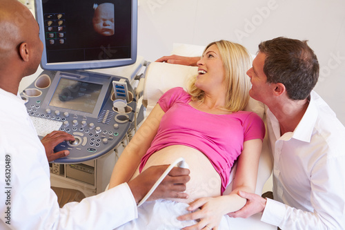 Pregnant Woman And Partner Having 4D Ultrasound Scan