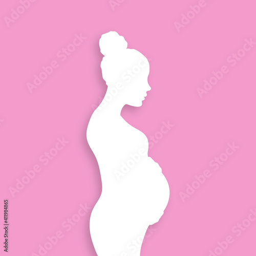 Pregnant woman silhouette. Paper cut design. Vector illustration.