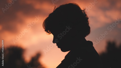 Pregnant woman's silhouette with glowing baby outline against sunset, embodying maternal love and new beginnings