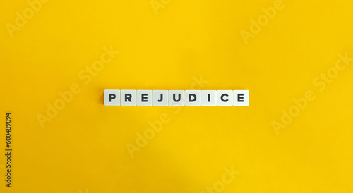 Prejudice Word on Letter Tiles on Yellow Background. Minimal Aesthetics.