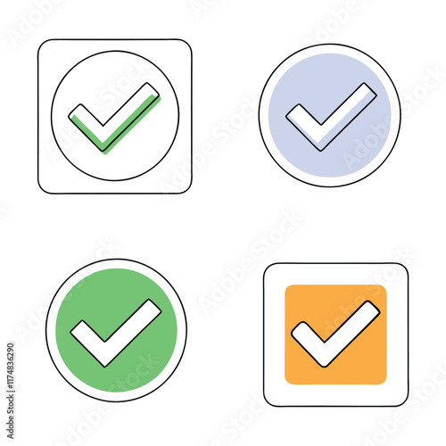 premium Colorful Check Mark Icons - Round and Square Approval Symbols. Minimalist Approval and Validation Symbols in Modern Design. any project design icon