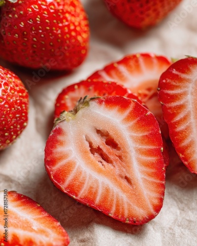 Premium Fresh Organic Strawberry Slices Close-Up on Natural Background for Healthy Eating Social Media and Food Marketing Campaigns