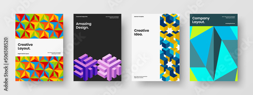 Premium geometric hexagons flyer template set. Creative leaflet design vector concept collection.