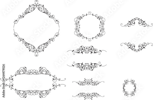 Premium Gold vintage baroque frame scroll ornament engraving border floral retro pattern antique style acanthus foliage swirl decorative design element filigree calligraphy. Vintage frame design