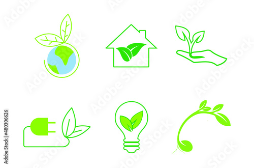 premium icon set of eco world, green world, green environment, plant growing, plant on the palm of the hand, eco-energy, green energy, help me grow, little plant icon set vector illustration