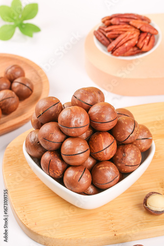 Premium Imported Macadamia Nuts Showcase with Mixed Dried Nuts Collection on Wooden Serving Boards