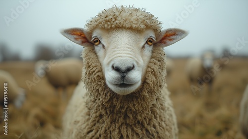 Premium Portrait: Sheep's Purposeful Look Amidst Nature, 自然の中での決意に満ちた羊のプレミアムポートレート.Generative AI
