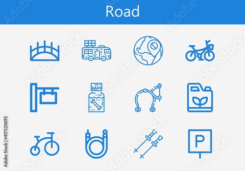Premium set of road line icons. Simple road icon pack. Stroke vector illustration on a white background. Modern outline style icons collection of Poles, Dippel oil, Gasoline