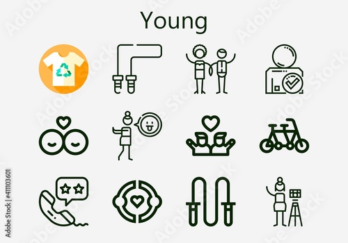 Premium set of young [S] icons. Simple young icon pack. Stroke vector illustration on a white background. Modern outline style icons collection of Friendship, Disgusted, Shirt, Friend, Friends