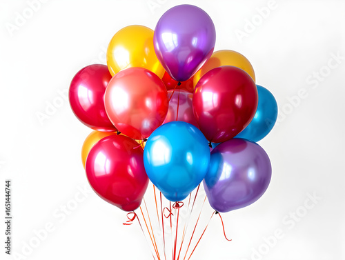 Premium studio shot showing Colorful helium balloons bunch for party celebration and decoration fun isolated on transparent background, festive arrangement with lively motion, studio product photo on