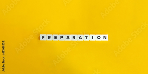 Preparation Word on Letter Tiles on Yellow Background. Minimal Aesthetic.