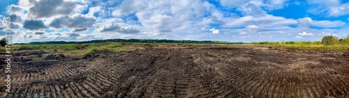 prepared construction site with traces of bulldozer leveling against blue sunny sky