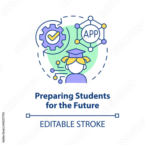 Preparing students for future concept icon. ICT benefit in education abstract idea thin line illustration. Isolated outline drawing. Editable stroke. Arial, Myriad Pro-Bold fonts used