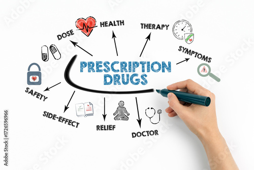 Prescription Drugs Concept. Chart with keywords and icons on white background