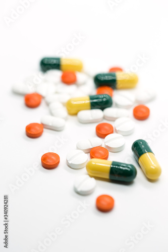 prescription pills on white background closeup