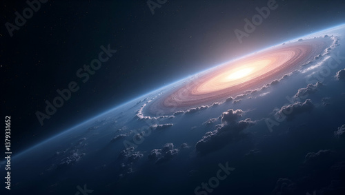 Present a sleek wallpaper design embodying life beyond Earth with extensive empty space and refined cosmic imagery that denote innovative astrobiological research transformative alien life studies and