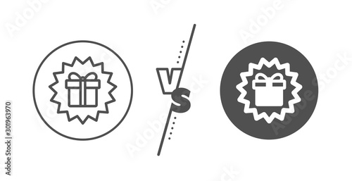 Present or Sale sign. Versus concept. Gift box offer line icon. Birthday Shopping symbol. Package in Gift Wrap. Line vs classic surprise gift icon. Vector