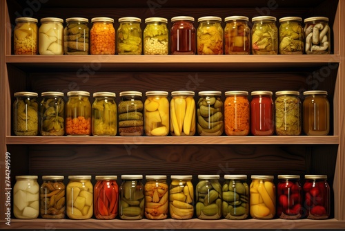 Preserves shelves. Winter kitchen glass. Generate Ai
