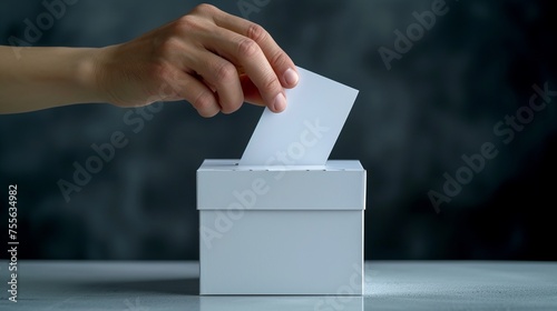 Presidential election voting concept with hand putting ballot in box and space for text placement