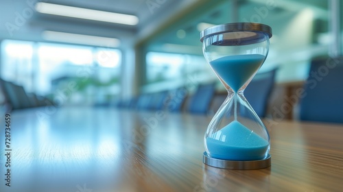 pressure as a critical business deadline approaches in a bustling corporate environment. Hourglass and sand clock.