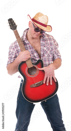 Pretty man with cowboy hat and guitar