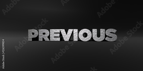 PREVIOUS - hammered metal finish text on black studio - 3D rendered royalty free stock photo. This image can be used for an online website banner ad or a print postcard.