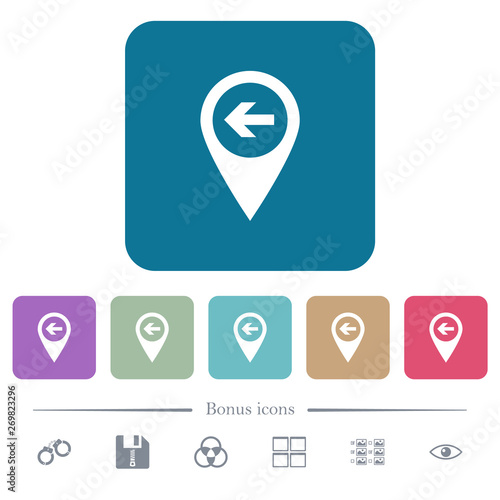 Previous target GPS map location flat icons on color rounded square backgrounds