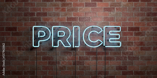 PRICE - fluorescent Neon tube Sign on brickwork - Front view - 3D rendered royalty free stock picture. Can be used for online banner ads and direct mailers..