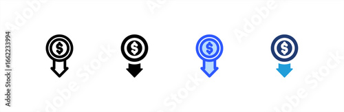 Price Down icon set multiple style collection. Vector illustration.