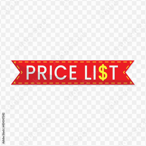 Price List banner design, red and yellow color, Vector Illustration with transparent background.