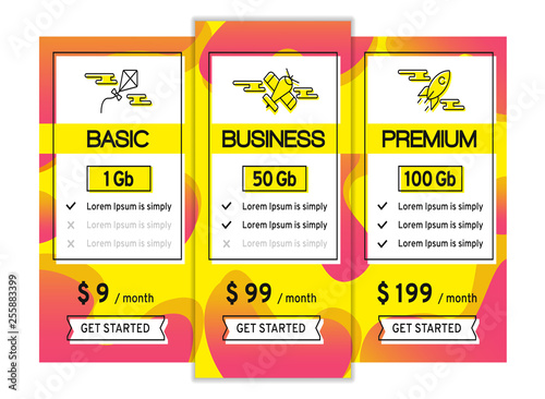 Price table for websites and applications. Template of tariffs. Vector illustration