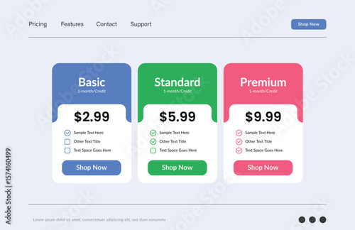 Pricing Plans Comparison for Basic, Standard, and Premium Packages
