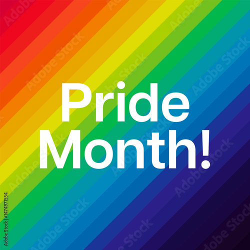 Pride Month Vector Illustration with Pride Month Text on Rainbow Striped Background. Rainbow Pride Flag Backdrop with Pride Month Typography. Pride Month Square Social Media Post Vector Design.