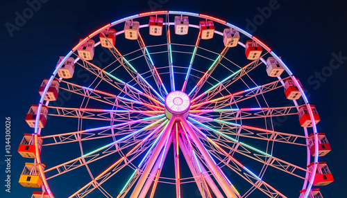 Pride-themed Ferris wheel illuminated at night, joyful celebration