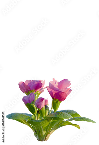 Primula tree cutout, front view, transparent background, isolate, Vibrant pink primrose blossoms unfurling in warm sunlight