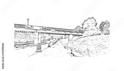 Print Building view with landmark of Springdale is the most populous city in United States. Hand drawn sketch illustration in vector.