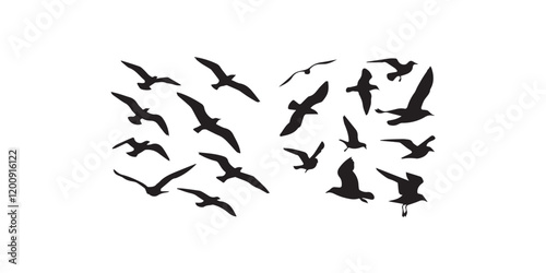 Print Set of Sea Gull Bird Silhouette
