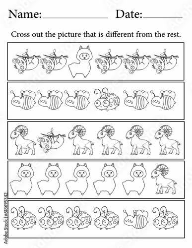 Printable Activity Pages for Kids | Activity Worksheets for Kindergarten Children | Find the Different Animal