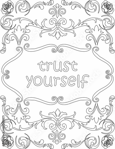 Printable floral coloring page for kids and adults with positive words for self love and self care. it helps to struggle against life to enjoy the tough journey
