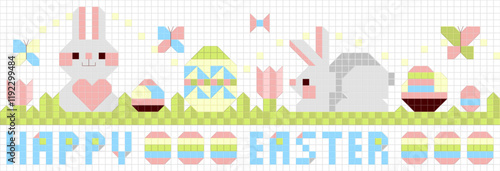 PrintCharming Easter Tile Decor with Bunnies, Eggs, Flowers and Butterflies. Seamless border, Party Decoration Concept. Hand-Drawn Vector Illustration, Not AI