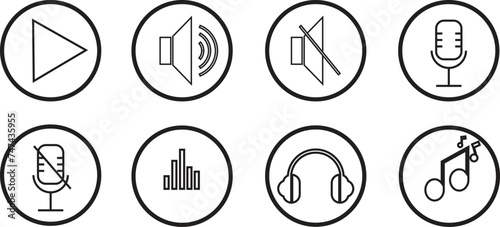PrintCollection of simple vector Illustrations related to music application icons