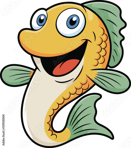 PrintCute cartoon fish with big blue eyes smiling happily, funny colorful sea animal, vector illustration for kids, ocean character design