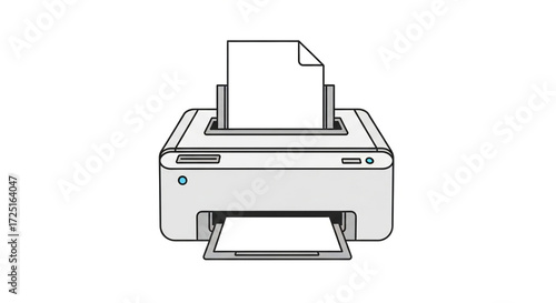 Printer with paper isolated on white background, ideal for illustrating office equipment, technology, and document management concepts