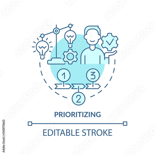 Prioritizing turquoise concept icon. Innovation management step abstract idea thin line illustration. Categorizing ideas. Isolated outline drawing. Editable stroke. Arial, Myriad Pro-Bold fonts used