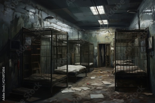 Prison room furniture deterioration architecture.