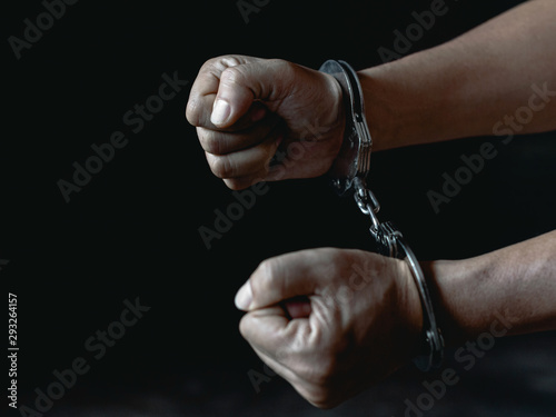 prisoner concept,Handcuffed hands of a prisoner in prison, Male prisoners were severely strained in the dark prison, violence,