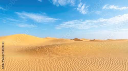 Pristine desert with undisturbed sand dunes and a bright blue sky above