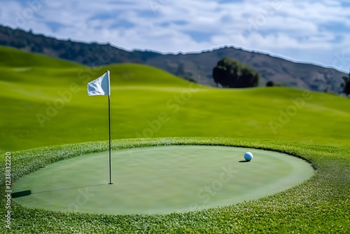 Pristine Golf Course Fairway Winding Towards Meticulously Groomed Green with Fluttering Flag