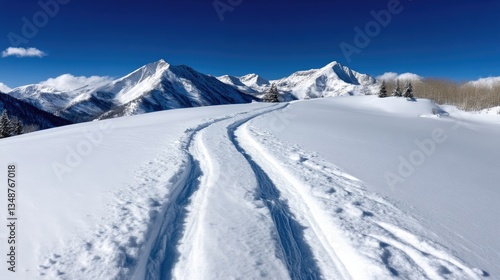 Pristine snow-covered mountain landscape with freshly-carved ski trails