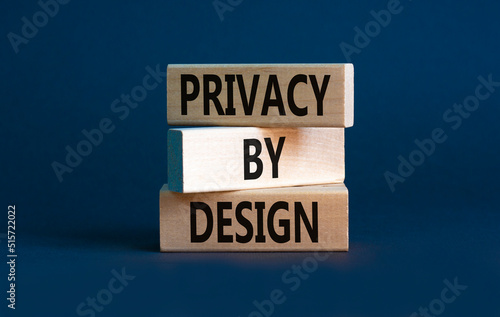 Privacy by design symbol. Concept words Privacy by design on wooden blocks on a beautiful grey table grey background. Business, finacial and privacy by design concept. Copy space.